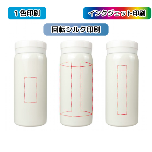 ボトル・タンブラー・マグカップの一色印刷は、「パッド印刷」「回転シルク印刷」の2種類があります。