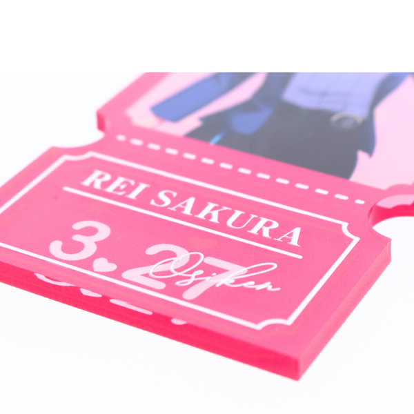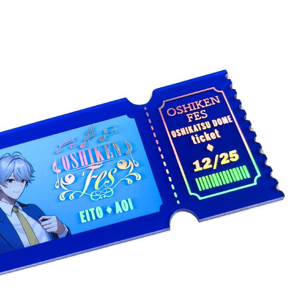 ライブや舞台などの公演物販におすすめの、チケット風デザインアクリルキーホルダーです。