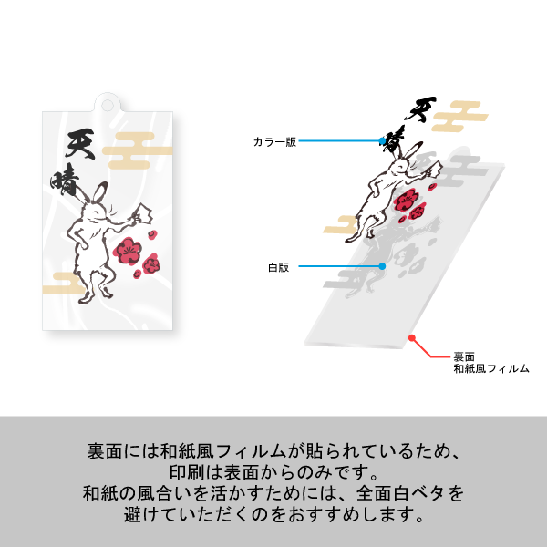 和紙風フィルムとアクリルを貼り合わせた、日本ならではの質感を持つアクリルキーホルダーです。
