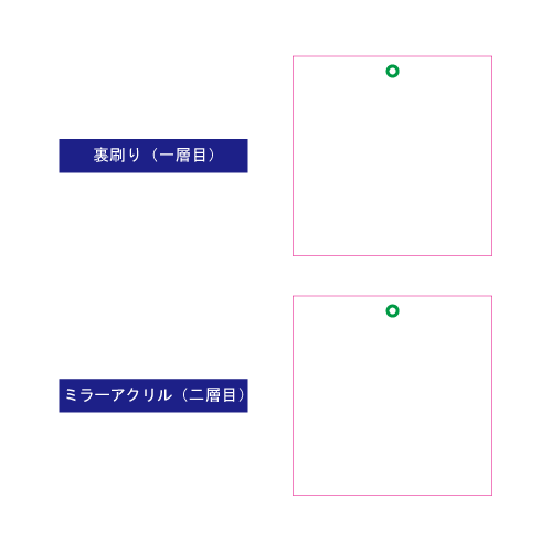 表面アクリルに白引きなしで色を載せる設計にれば背面のミラーが透けて見え、メタリックな質感を活かした演出も表現できます。