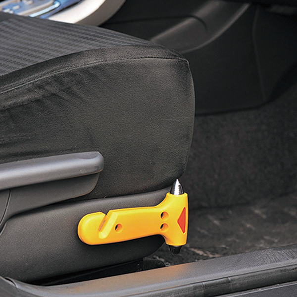 万一の事故やトラブルに備えて、車に常備しておきたい必須アイテム。 ハンマーで車の窓ガラスを割ったり、カッターでシートベルトを切ることができます。
