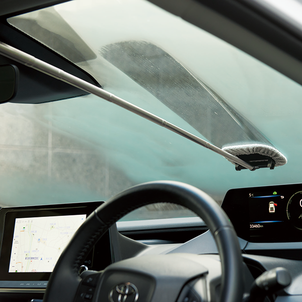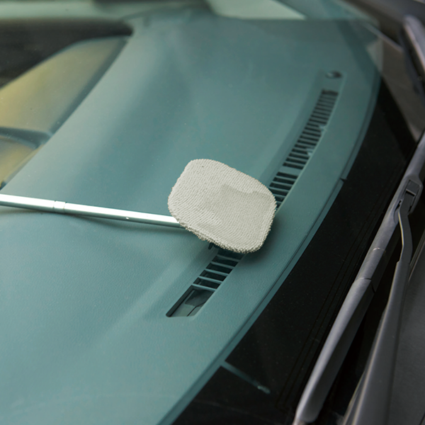 狭い隙間もサッと拭ける伸縮モップです。車のフロントガラスや高い窓の掃除に便利。 先端を外してミニスクレーパーにもなります。