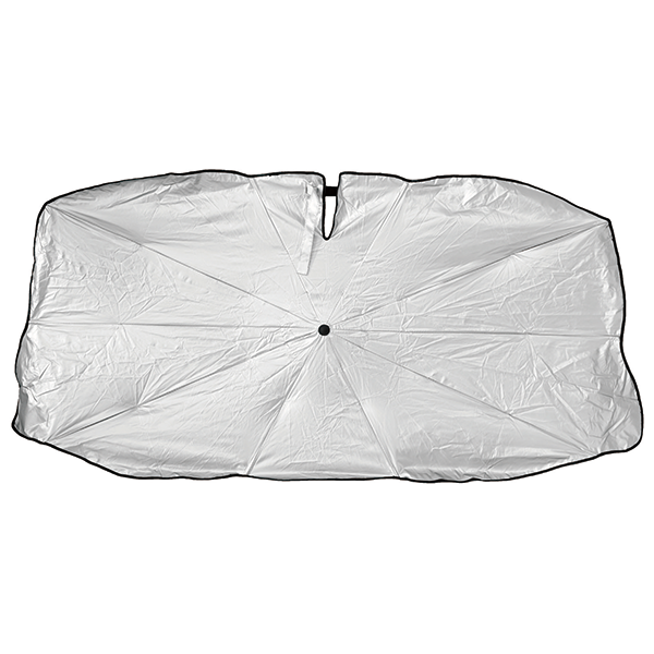 折りたたみ傘のように簡単展開できる車用のサンシェード。手間いらずでワンタッチクローズ。 シルバーコーティングで熱やUVをカット。