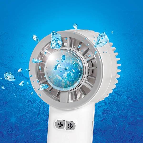 手持ちでも置いても使える充電式クーラーファン。風とアイスプレートのW効果で効率的に冷せます。 風量も3段階調整可能です。