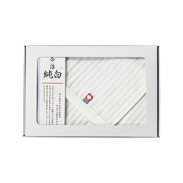 タオルの聖地である今治産のハンドタオル。シンプルで誰でも使いやすい白いタオルです。 和の雰囲気を演出した市松模様の箱もポイント。