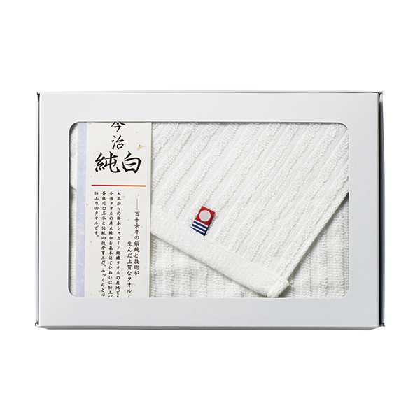 タオルの聖地である今治産のタオルハンカチ。シンプルで誰でも使いやすいサイズです。 和の雰囲気を演出した市松模様の箱もポイント。