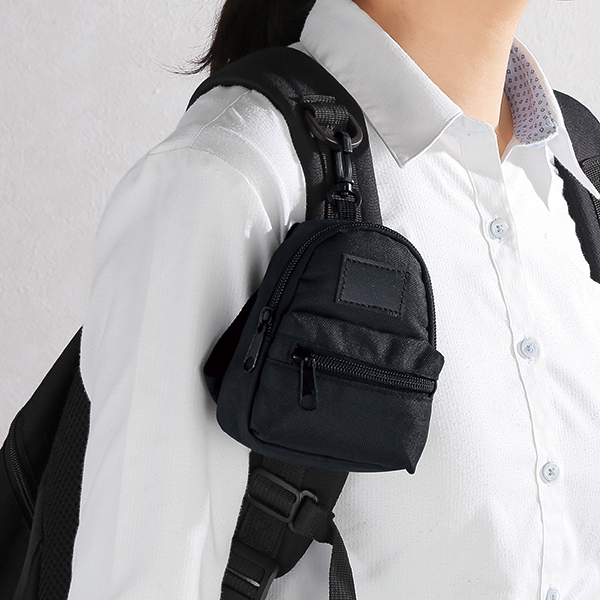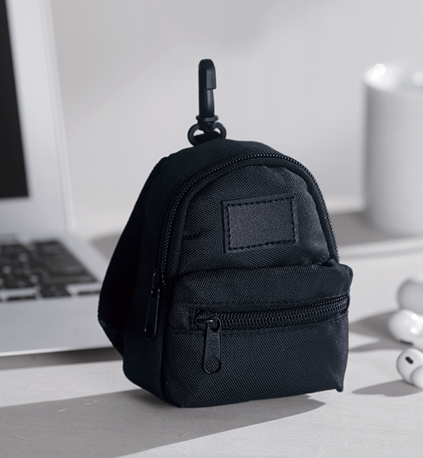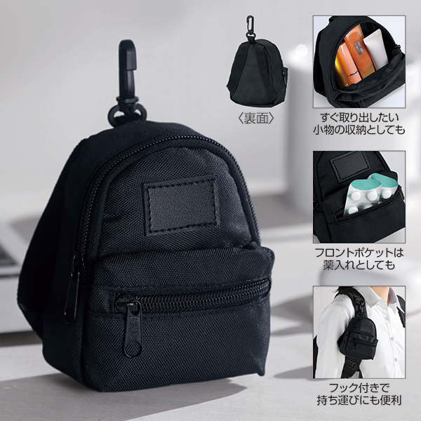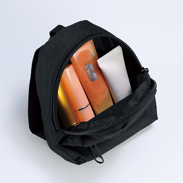 コーディネートのさり気ないポイントにもなる、お洒落でかわいいリュックサック型のミニポーチ。持ち運びに便利なフック付きです。 ユニセックスに使えるのも嬉しいポイント。ポーチはシーズン問わず人気のノベルティのため、デザイン性と使い勝手の良さで選ぶことでプロモーション効果もアップ。