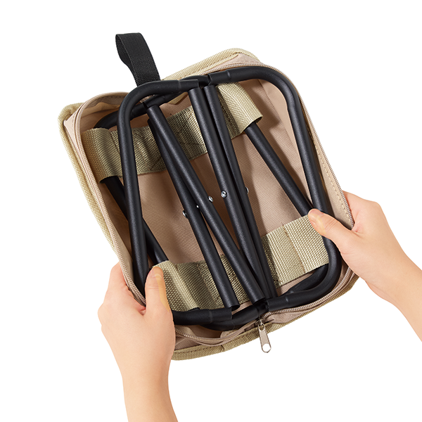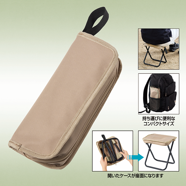 省スペースで丈夫な優秀小型チェア。アウトドアシーンなど、屋内外問わず大活躍間違いなしです。 屋外でも役立つアイテムは春夏の販促品の中でも特に喜ばれるので、スポーツやアウトドア、ファミリー向けなど幅広いイベントのノベルティにお使いいただけます。