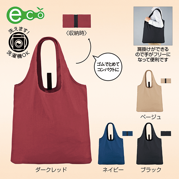 くすみカラーとマルシェ型が特徴のお洒落なエコバッグは、コンパクトに折りたたみも出来てどこへでも持ち運べます。 ナイロン素材でワンランク上の高級感を。流行を問わないシンプルで洗練されたデザイン、持ち運びしやすい形状。利便性が高いアイテムは、それだけプロモーション効果も長く期待できます。