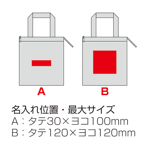 | 1色印刷範囲 | A:W100×H30mm、B:W120×H120mm |