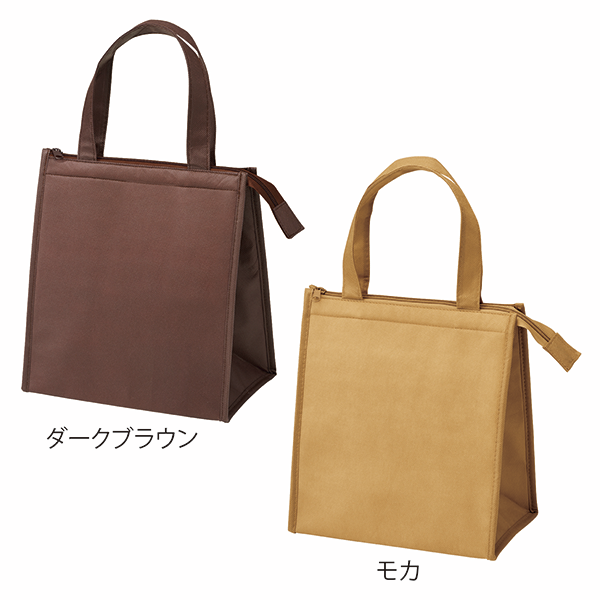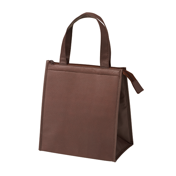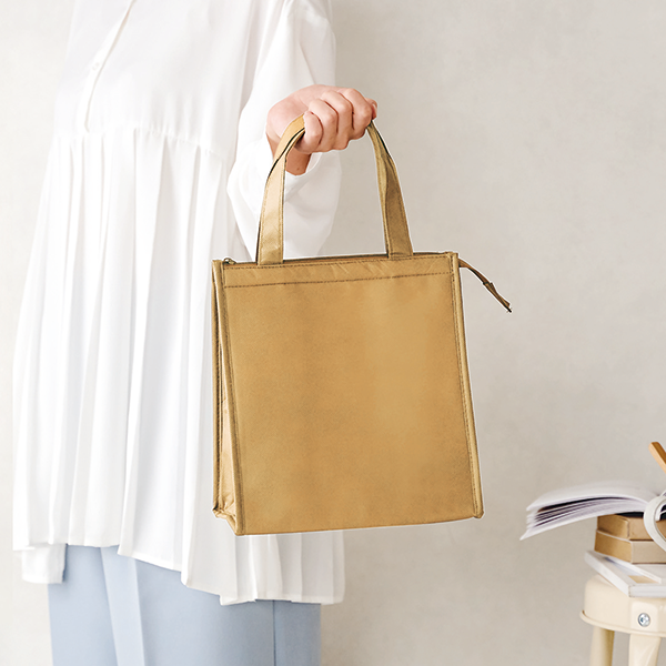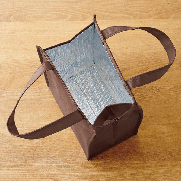 軽量で丈夫な不織布製の保冷スクエアバッグは、500mlペットボトルを立てて入れることができるサイズとシックな色味が特徴です。 アルミ蒸着フィルムを使用した、シンプルで機能性の高いデザインなので、名入れ効果も長く期待できます。ファミリー向け、個人向けどちらのノベルティにもおすすめです。