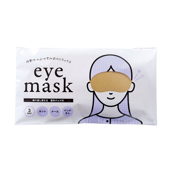 ホット・クール・ジェルなしの3WAYで通年使えるアイマスク。 お家でのリラックスタイムや移動中でのひと休みなど、幅広い方がお使いになれるアイテムです。