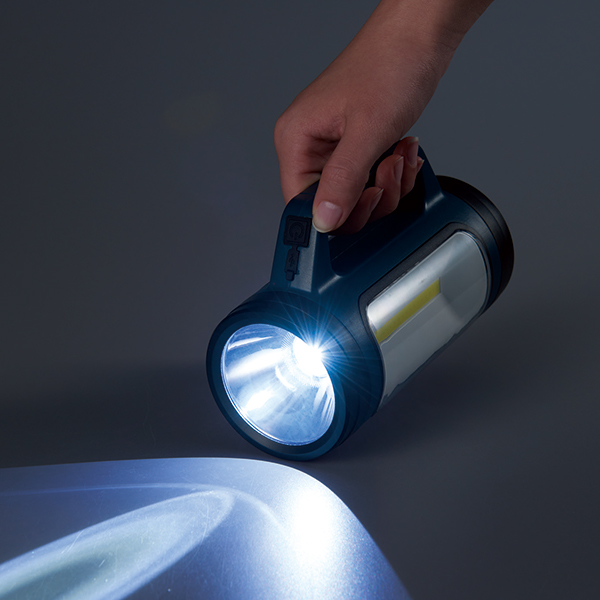 2WAY充電でアウトドアや防災も安心して使える多機能ライト。 手持ちライトに、置きも使えるランタン機能付き。備えて頼れる、使って便利な多機能ライトです。