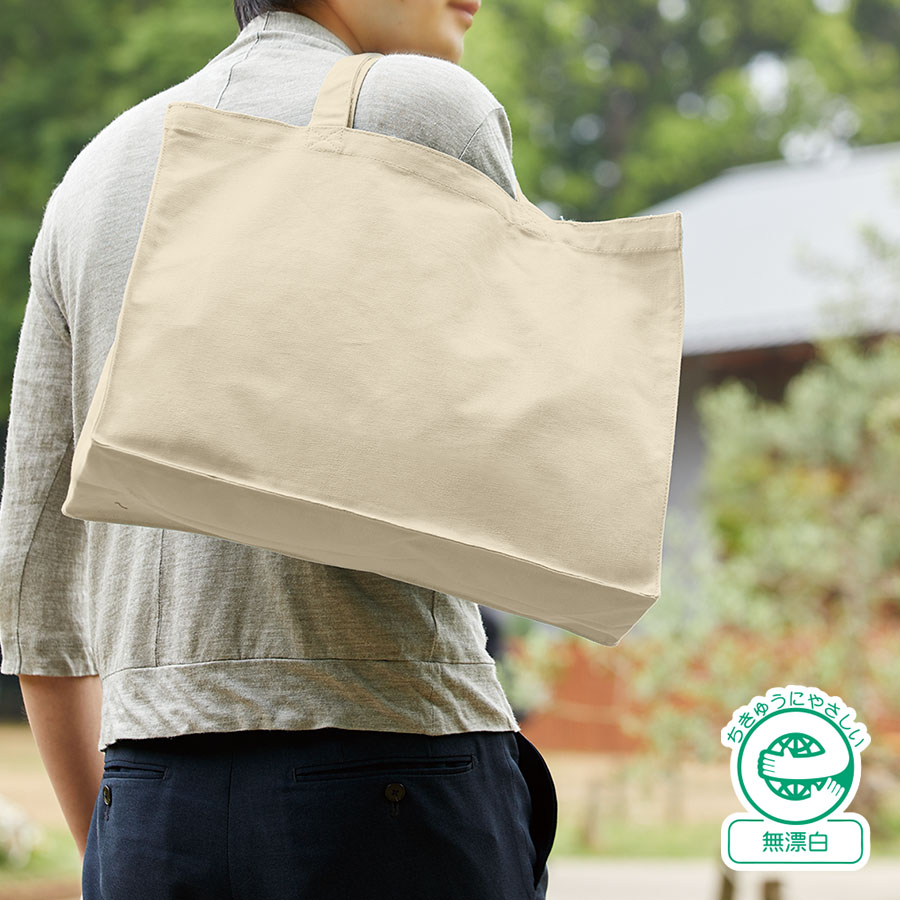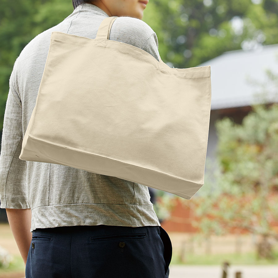手に取ればわかる、その品質。キャンバスカレッジトート(L)ワイド ナチュラル。厚みのあるコットン生地のスクエアトートです。A3サイズが収容可能で企業用ノベルティや個人利用など幅広い用途にご利用いただけます。※エコマーク付。一度使えば手放せなくなること間違いなし。