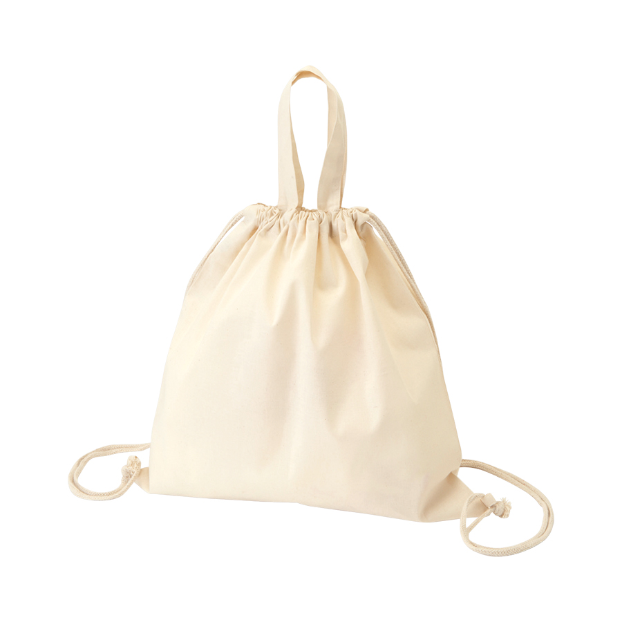 使い心地とデザイン、厚手コットンハンドル付リュック ナチュラル。シチュエーションに合わせて、手持ちでもリュックサックとしてでも。臨機応変に使えて便利な2Way仕様のリュックです。マチ付きで収納力も十分。巾着タイプの口をキュッと閉めればコンパクトでキュートなフォルムに。シンプルかつカジュアルにお使いいただけます。いざというときの防災グッズ収納袋や、お子様の学校用品入れとしてなど、使い方は自由自在。