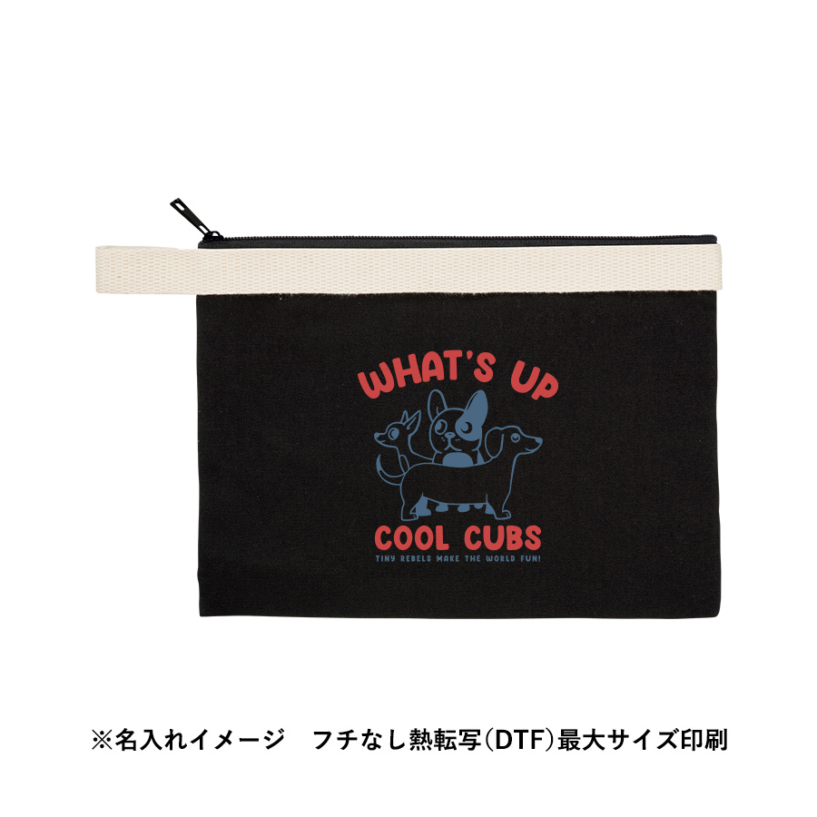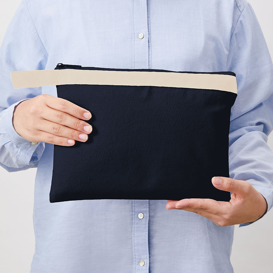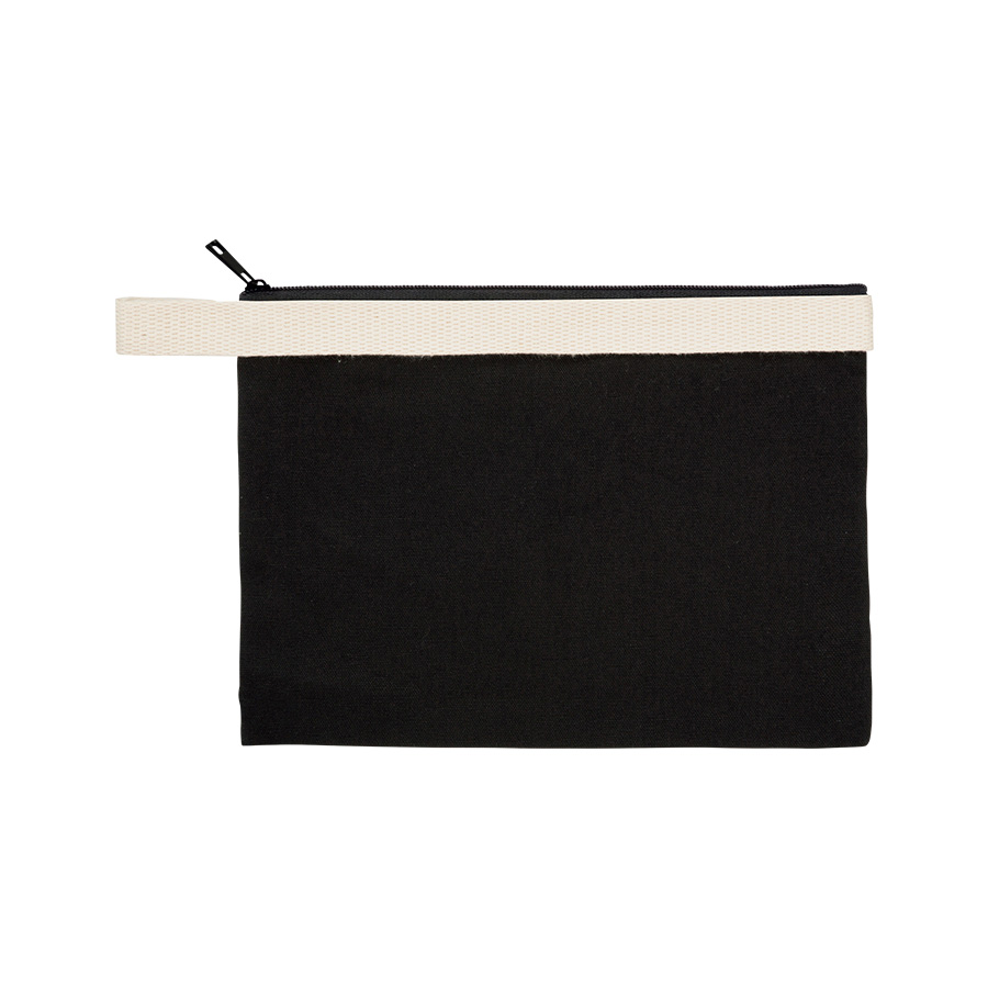 毎日の生活に彩りを加えるキャンバスベルトストラップポーチ(M)。バイカラーのストラップベルトがアクセント!ステーショナリーも入れやすいフラットタイプなので実用性も抜群です。化粧品を持ち運ぶ女性はもちろん、最近は男性でもポーチを使用する方が増えておりますので男性向けノベルティとしても是非お役立てください。名。日々の生活をちょっぴり豊かにするアイテムです。