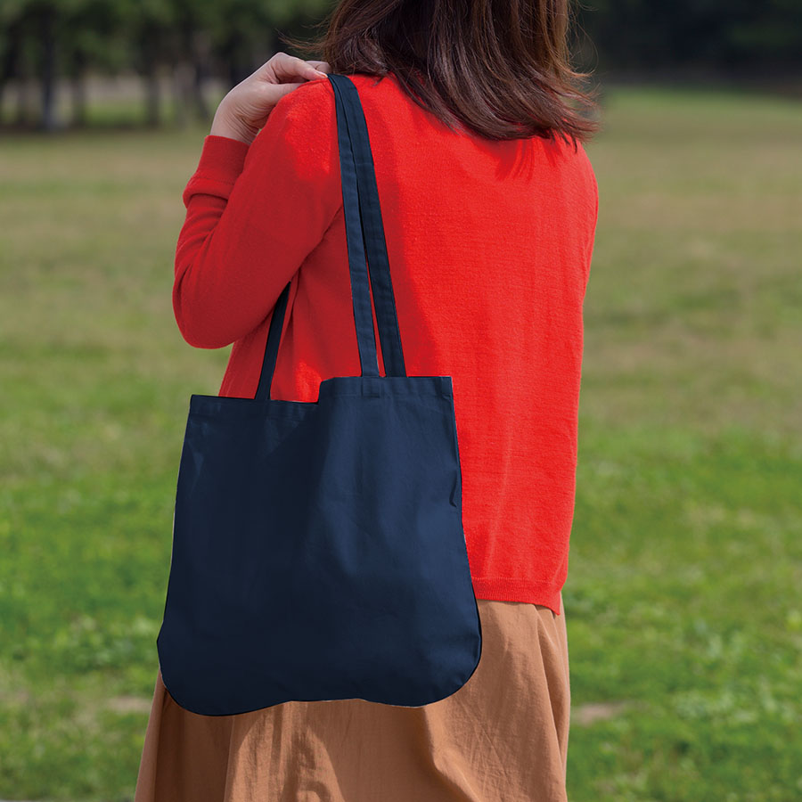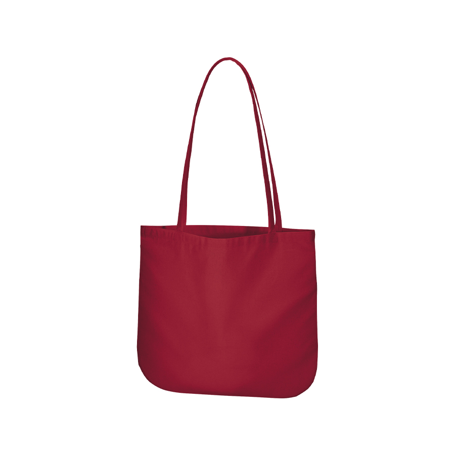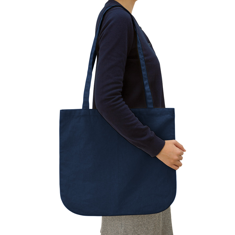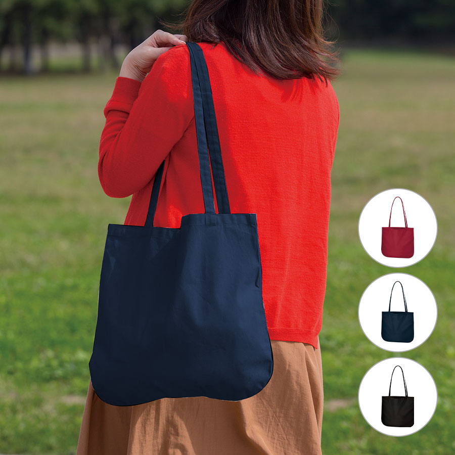 毎日の生活に彩りを加える厚手コットンラウンドボトムバッグ(M)。長い持ち手に丸み帯びたフォルムが可愛い、旬のリラクシースタイルのロングショルダーコットンバッグです。5オンスのコットン生地なので透けにくく、コンパクトに折りたたむことができるので、サブバッグやエコバッグとして使いやすいサイズです。日々の生活をちょっぴり豊かにするアイテムです。