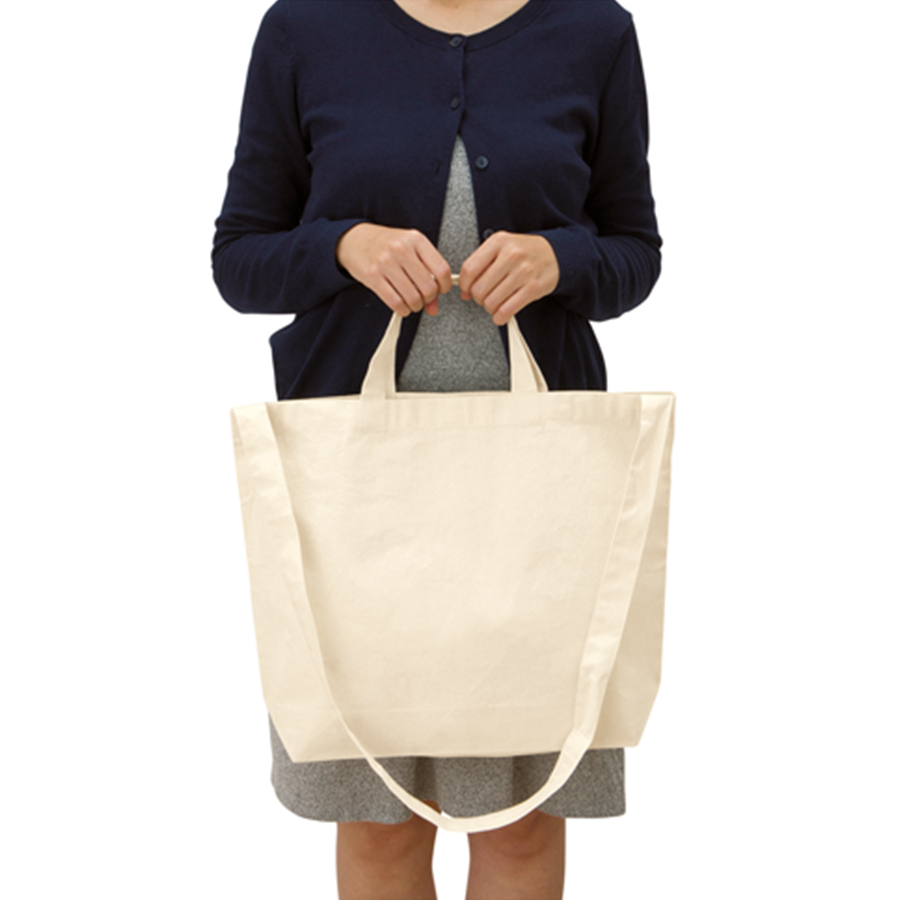 毎日の生活に彩りを加える厚手コットンWスタイルバッグ ナチュラル。【エコバッグとしても大活躍!】ショルダーとトートの2WAYで使える、5オンスの厚手コットンで作ったコットンバッグです。ユニセックスに使えるサイズ感でたっぷりものが入ります。5オンスの肌触りのいいコットン生地に、オリジナルのデザインが映えるショルダートートバッグです。毎日の生活をより快適に。