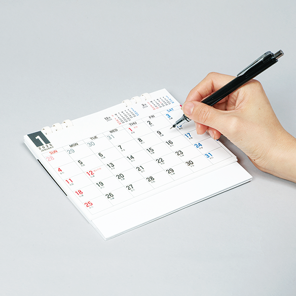 シックな色合いで見やすさ抜群の定番サイズの紙リングカレンダー。