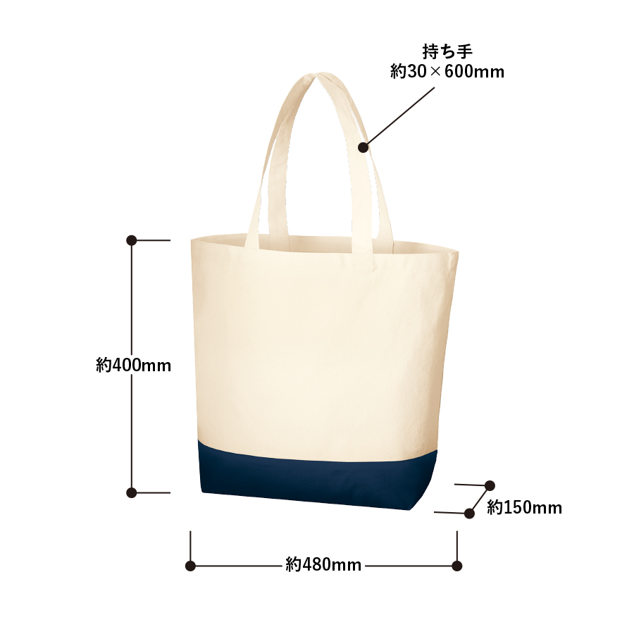 使い心地とデザイン、キャンバスカラーボトムトート(L)。ボトム部分にカラーの切り替えがある、おしゃれなキャンバストートバッグです。持ち手部分のベルトが側面にありませんので、オリジナルデザインを大きく名入れすることができます。10オンスのキャンバス生地は丈夫なので、エコバッグやサブバッグにぴったり。底マチも広いので、かさばる荷物を入れるお買い物バッグにもおすすめです。ユニークなデザインを印刷し。