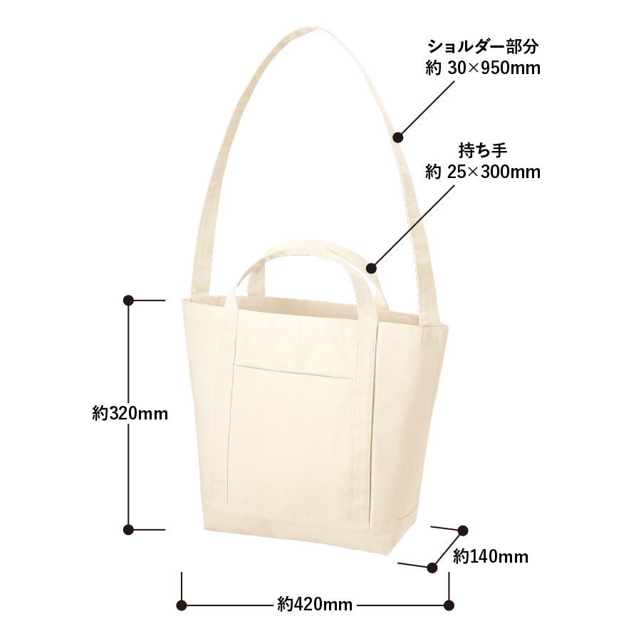本体サイズ | 本体/約420×320×140mm 持ち手/約25×300mm・ショルダー部分/約30×950mm |