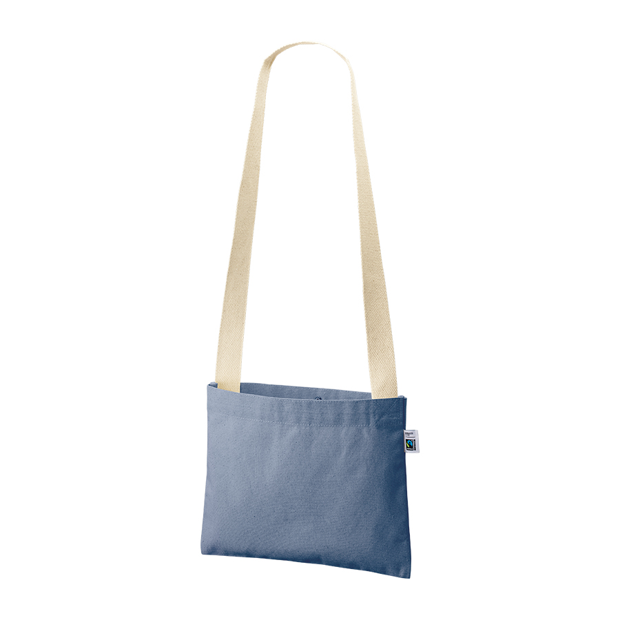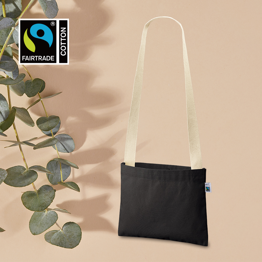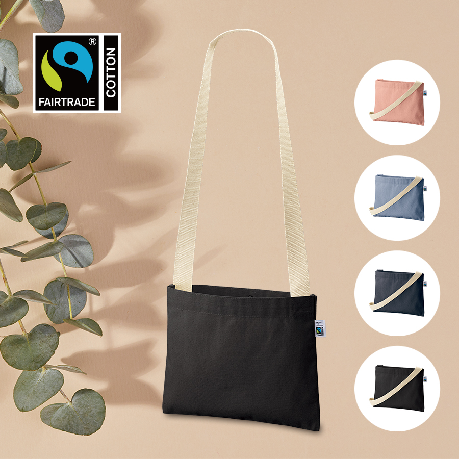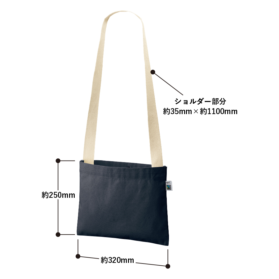 フェアトレードコットンを使用した横長のベーシックなシンプルサコッシュです。