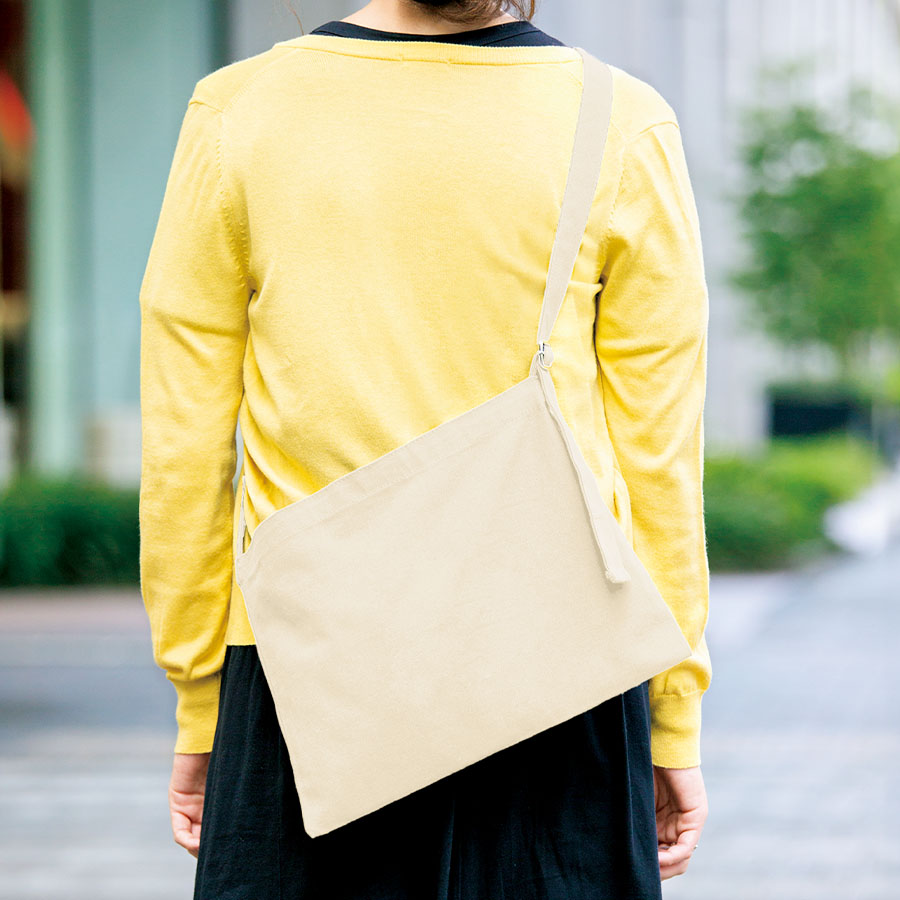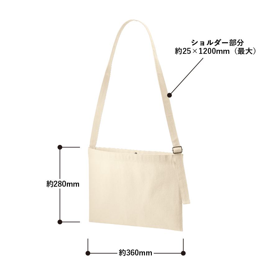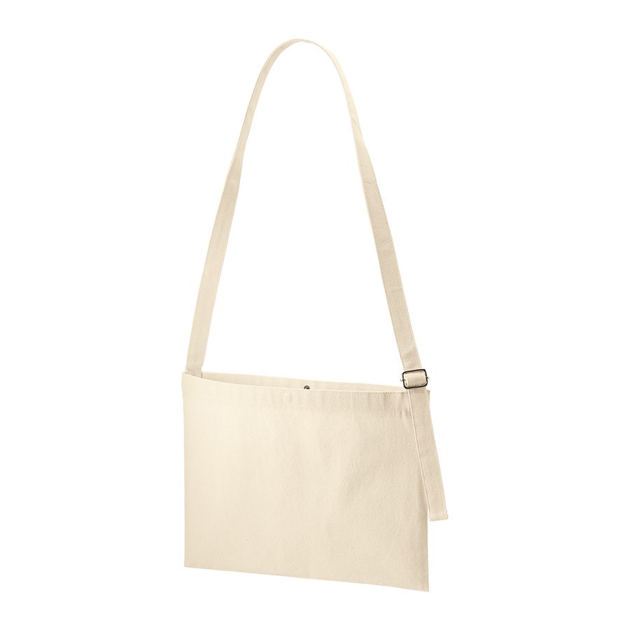 オリジナルグッズドットコムがおすすめするキャンバスアジャストショルダーサコッシュ ナチュラル。キャンバスアジャストショルダーサコッシュ、ナチュラルは、長さ調節が可能なアジャスター付きのサコッシュです。ショルダーを短くして持ち歩く流行りのスタイルも可能でおしゃれさを演出します。またお子様でも使用出来るのでレッスンなどの習い事にも活用出来ます。生地は10オンスを採用しており、中身が透けにくく便利です。口元にはホックがついているので走ったり自転車に乗っても中身が飛び出ず安心です。印刷面が広く、両面にも印刷が可能。熱転写やインクジェット印刷が可能で、フルカラー印刷が映えます。展示会やオープンキャンパス、ス。オリジナルグッズドットコムの選りすぐり。