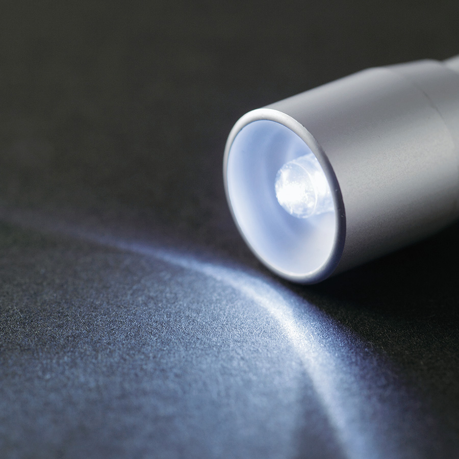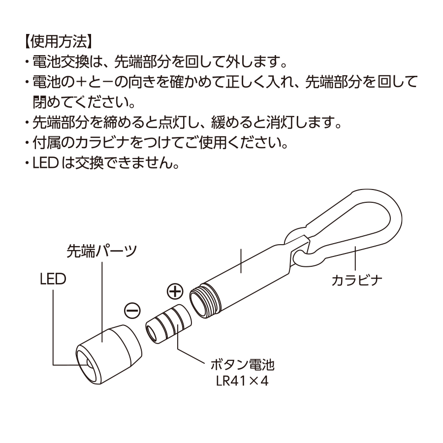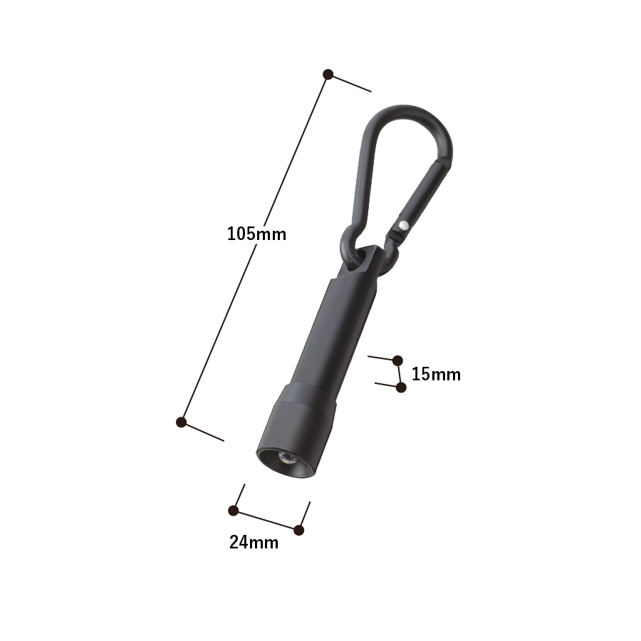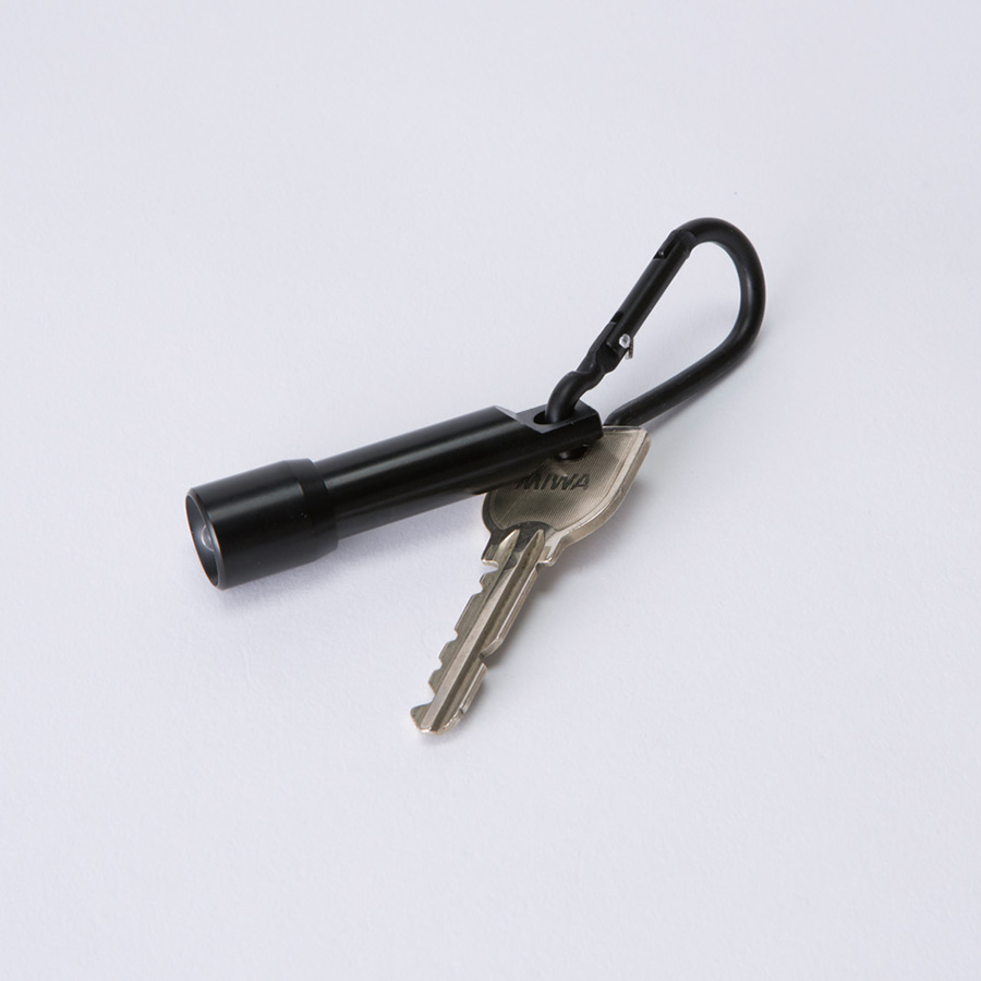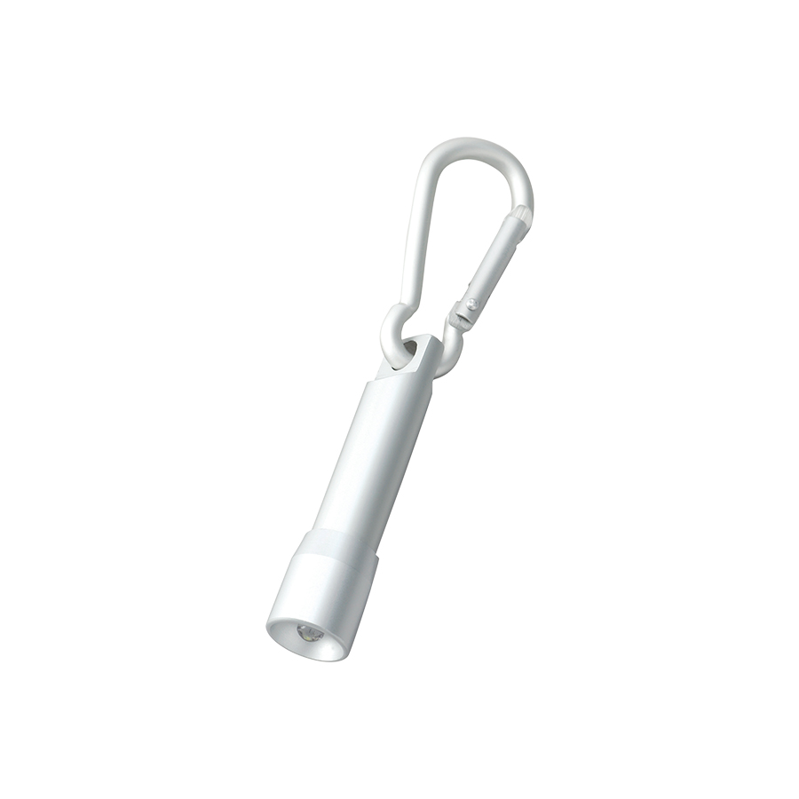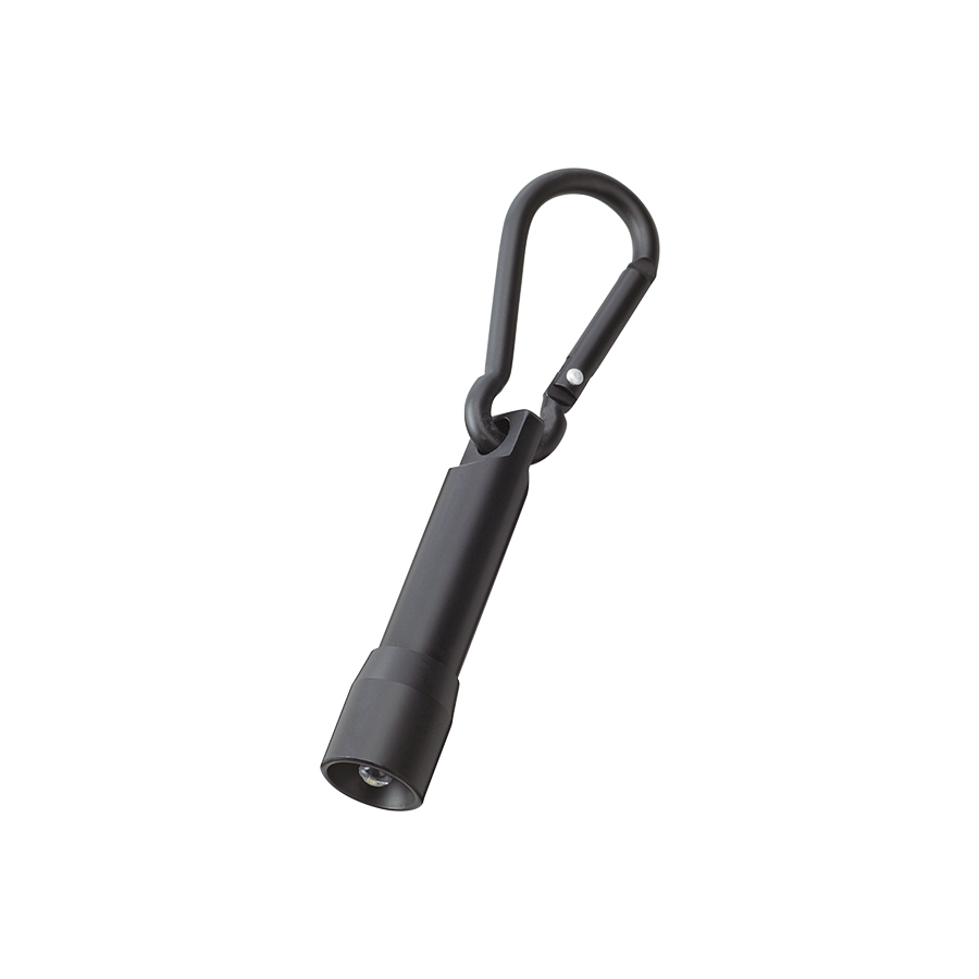 便利なカラビナ付でバッグなどに取り付けて持ち歩けます。頭部を回すことでライトが付くスマートなデザインも魅力です。