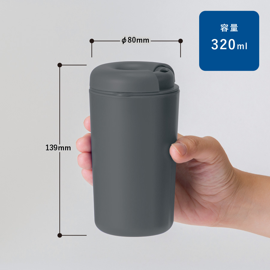 手に取ればわかる、その品質。カフェタンブラー ベーシック。スライド開閉の2タイプの飲み口と、マットな質感で指紋が付きにくく指留め付きですべらないオシャレなタンブラーです。