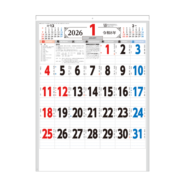 【最短12営業日出荷!】実用性を考え、シンプルで定番のデザインを施したカレンダーです。