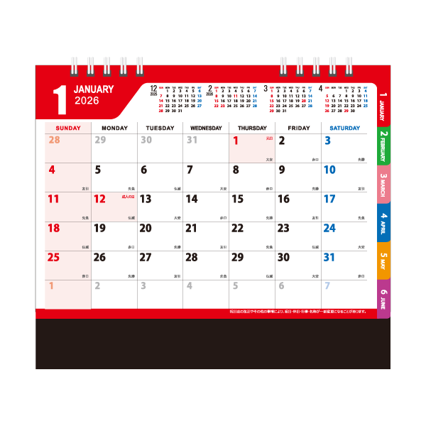 【最短7営業日出荷!】カラフルなデザインでデスク上を明るくする、見やすさ抜群の卓上カレンダーです。 裏面にはスケジュール管理に最適なメモスペースもあり、一年間フルにご利用いただけます。