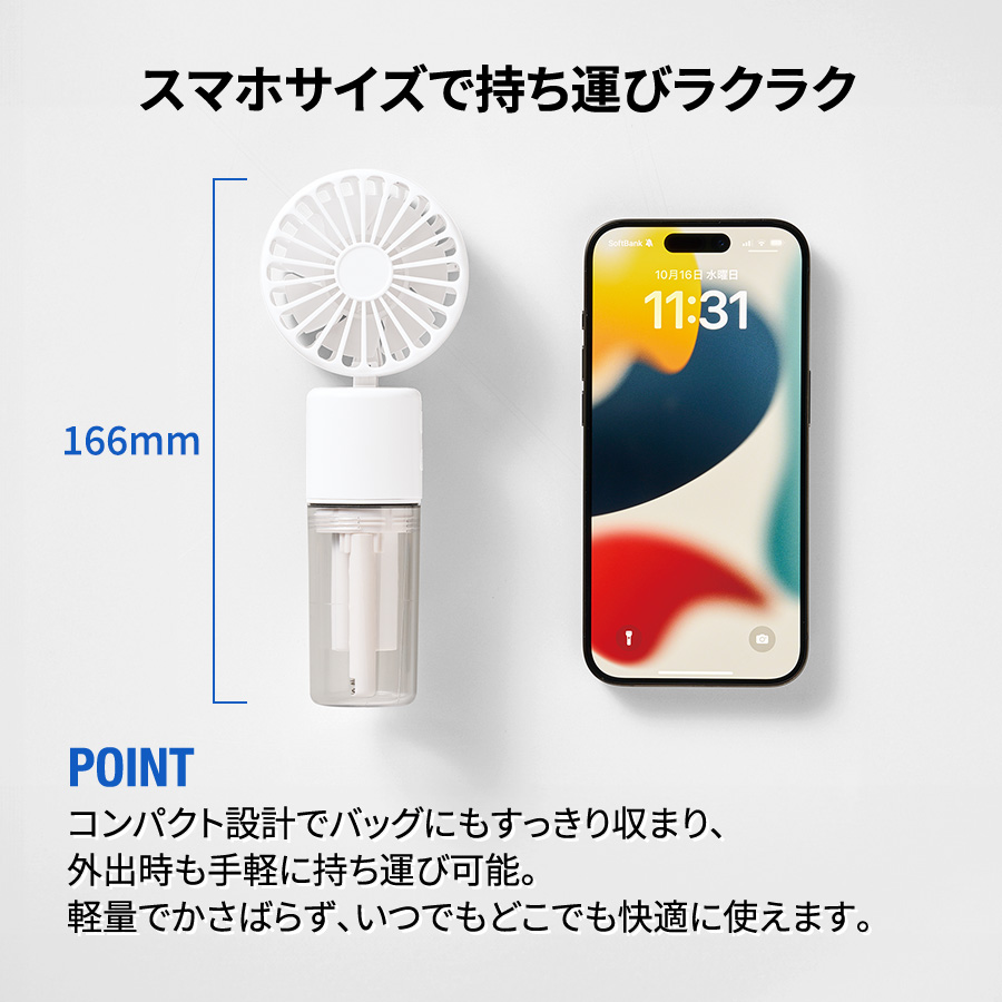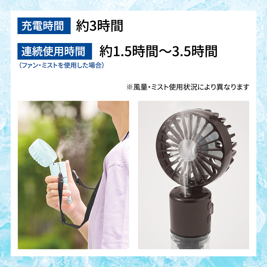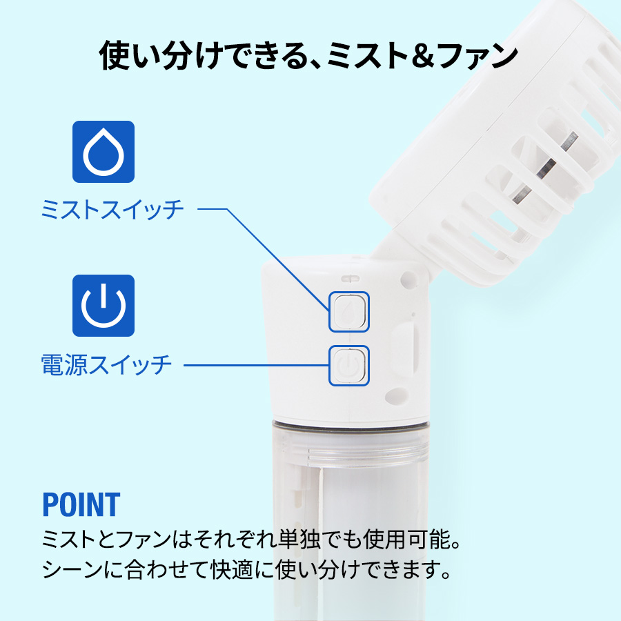 ファンとミストは別電源のため、それぞれ使用することができ、またミストのみ稼働させれば加湿器としても使うことができます。