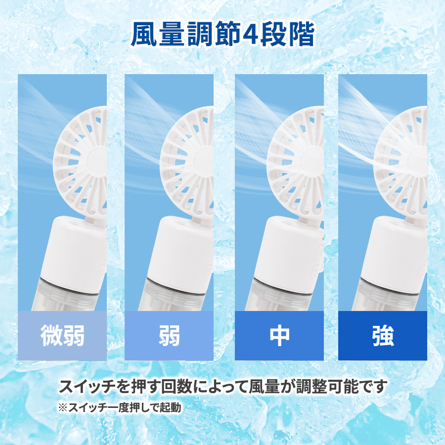 微弱・弱・中・強の4段階で風量調節ができるため、使用シーンに応じて使い分けが可能です。
