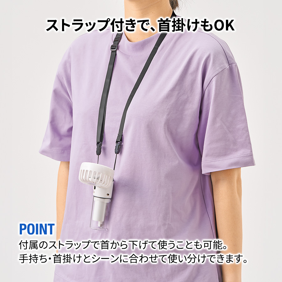 ストラップ付きで本体の角度調整ができ、首から下げて使用することができます。