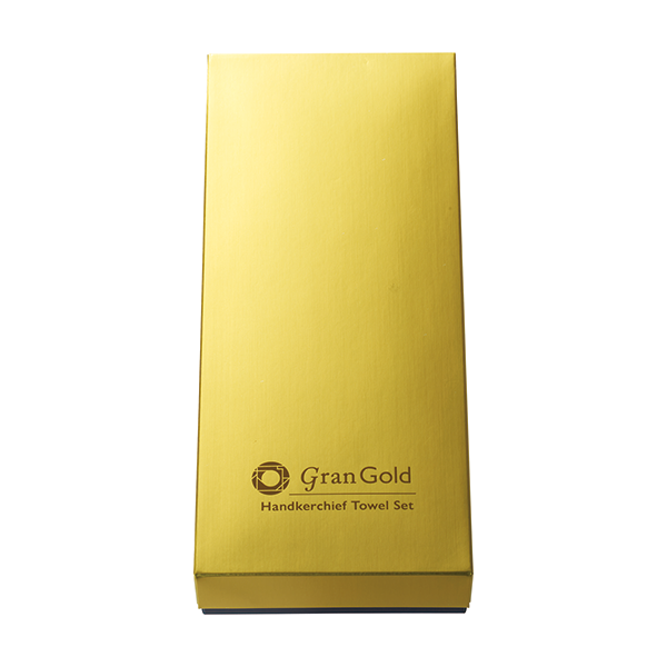 手触り良く吸水性あるハンカチタオル3枚組。豪華な見栄えのゴールド箱入なので、お客様にきっと喜ばれる商品です。