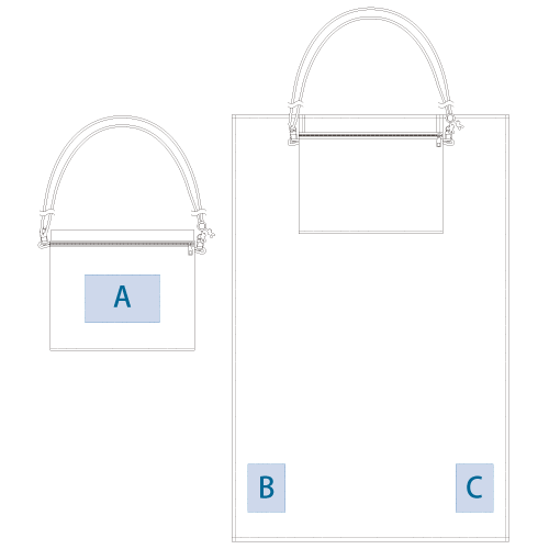 | 1色印刷範囲 | A/W140×H90mm、B・C/W70×H90mm |