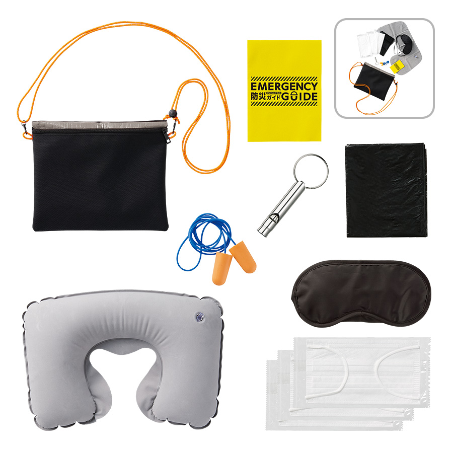 ゴミ袋/耳栓/ネックピロー/防災ガイド