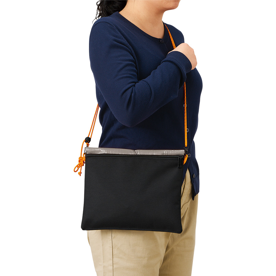 サコッシュのポケット面と中のシートにも名入れが可能でオリジナル備品やグッズとして、また防災キャンペーンにもご提案いただけます。