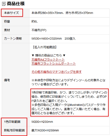 印刷方法や素材については商品ページ内の商品仕様に記載がございますので、